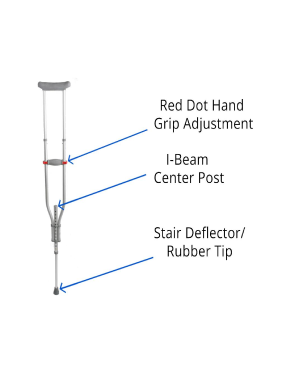 Quick-Fit Aluminum Crutches with Red Dot Hand Grip and I-Beam Height Adjustment, 4'7" - 6'7"